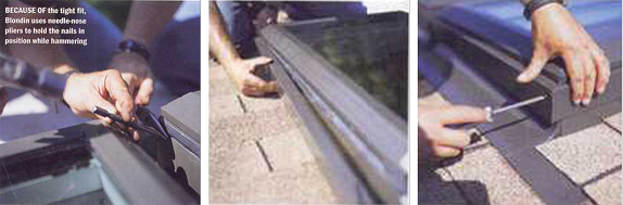 19. Because of the tight fit, Blondin uses needle-nose pliers to hold the nails in position while hammering.