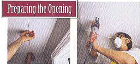 1. Hammer a nail from the attic to the ceiling to use as a guide; then level, square and mark the ceiling cutout.
