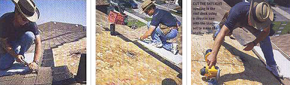 6. Cut the skylight opening in the roof deck using a circular saw with the blade set to make the shallow cut.