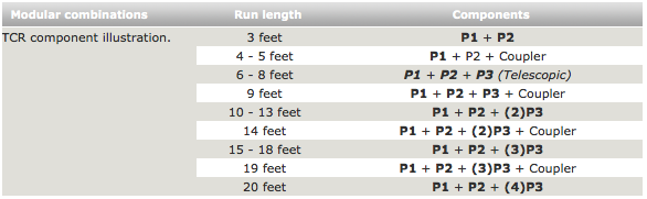 - Run length accounts for standard 2" overlap between components.