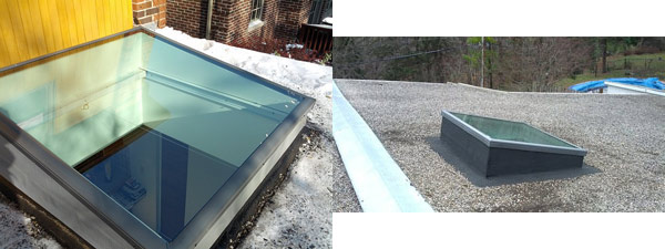 Flat glass skylights need to be installed on a sloping curb to allow drainage of dirt rain and snow.